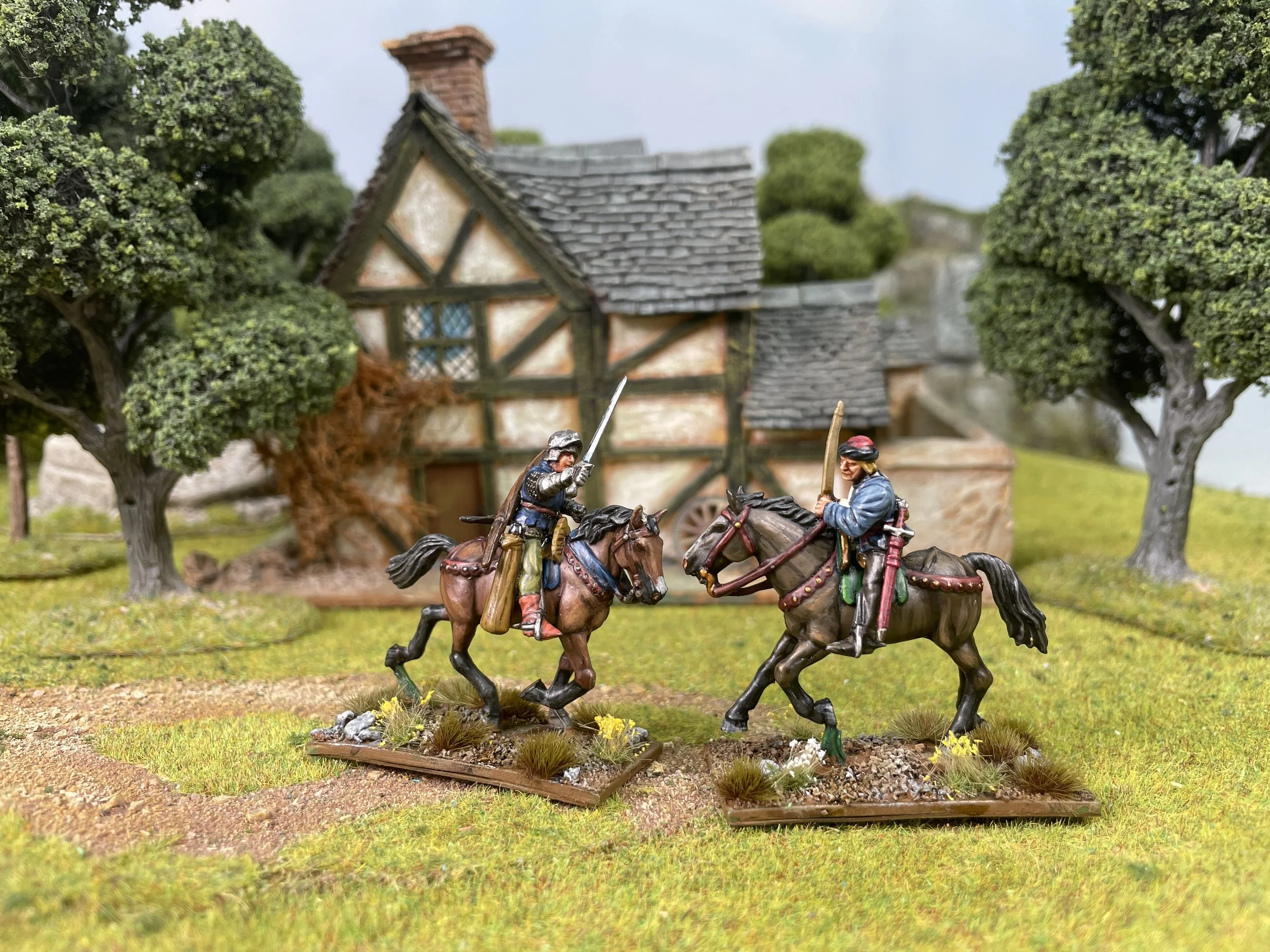 The Billmen can also be mounted on Warhorses, but do not gain the Equestrian skill. They can be armed with lances to act as Scurrers or similar.